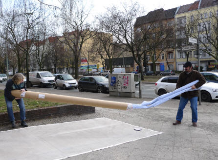 Dank der Aachener SWG war es möglich, an das Haus Osloer Str. Ecke Prinzenallee einige großflächige Banner zu hängen.