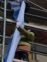 Neu hängt jetzt ein Banner 6 x 8 m, entworfen von Jovan Balov, dessen Entwurf den Zuschlag der Ausschreibung von Nov. 2009 erhielt.