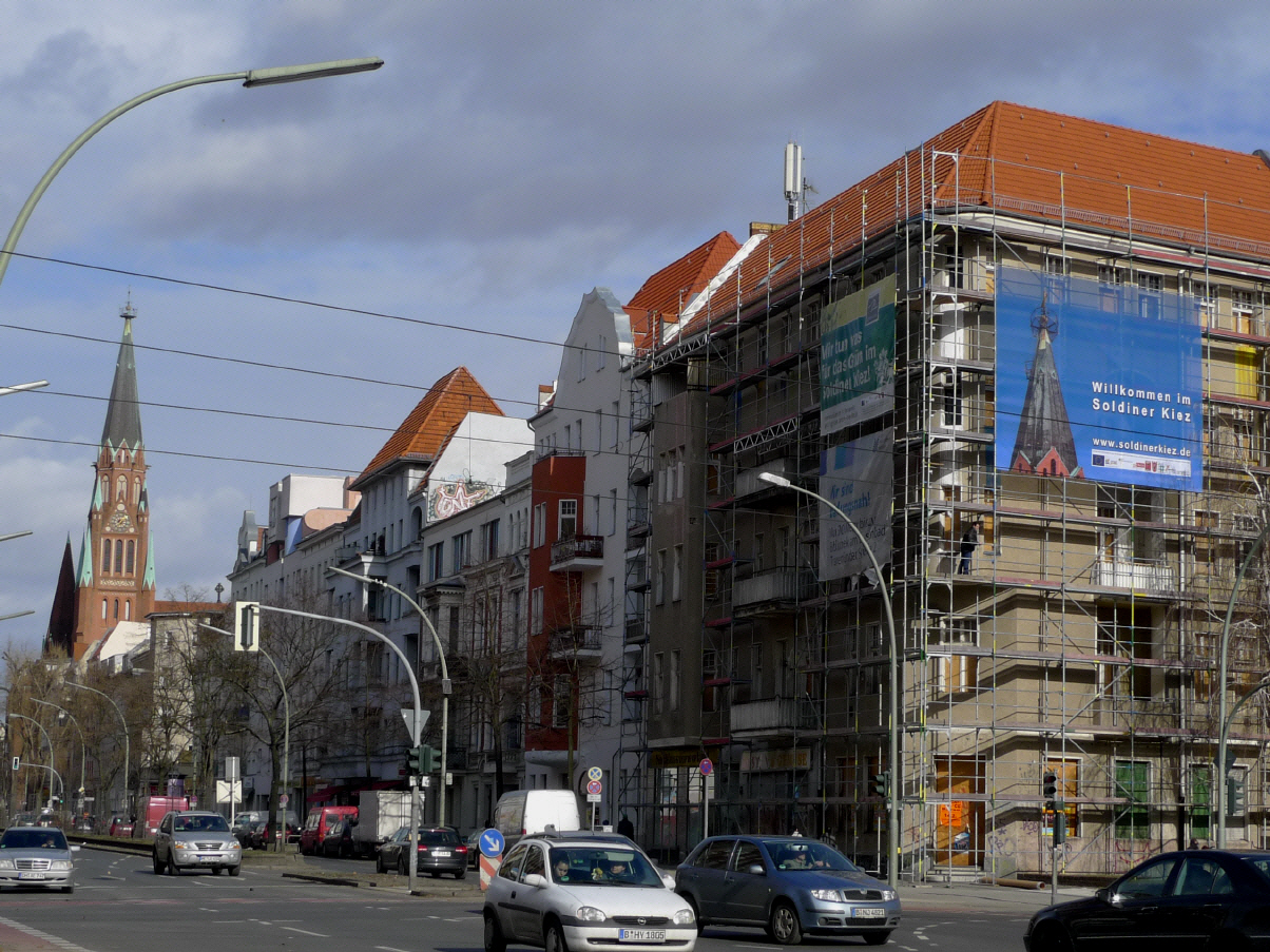 Kerstin Kaie, Projektleiterin: Ein Groß-Banner an der sehr frequentierten Osloer Straße, das war die Chance, ein positives Außenimage zum Soldiner Kiez zu vermitteln. Dazu war mir wichtig: * Ein in Sekundenschnelle erfassbares, interessantes Motiv * Ein klarer Ortsbezug: es geht genau um diese Region * Eine Beruhigung der hektischen Straßenkreuzung statt zusätzlicher Ablenkung * Das Angebot für weitere Informationen (Adresse einer Webseite), gut erinnerbar. Der Entwurf von Jovan Balov hat sofort begeistert. Sein Titel könnte sein: "Ein Stück vom Himmel"
